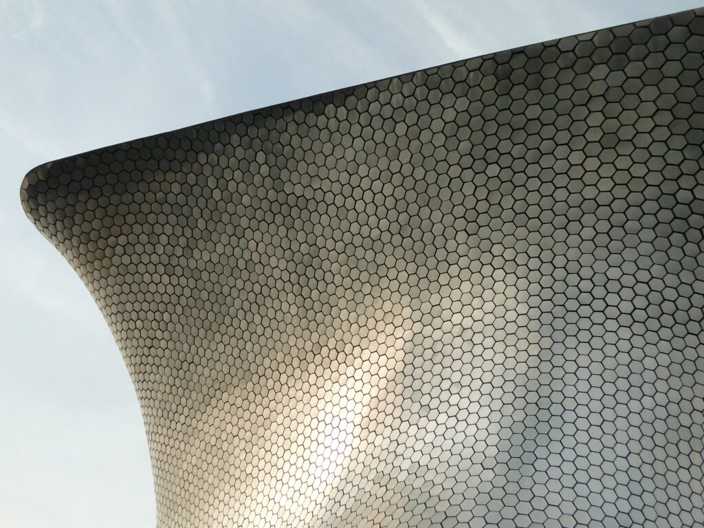 El Museo Soumaya se ha convertido en uno de los edificios más reconocidos del país gracias a su silueta curva y futurista. Fue diseñado por el arquitecto Fernando Romero. Su estructura se compone de más de 16,000 paneles hexagonales de aluminio, que reflejan la luz a distintas horas del día, transformando al museo en una pieza de arte por sí misma.