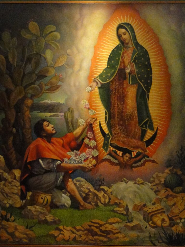 La Virgen de Guadalupe ocupa un lugar fundamental en la identidad cultural mexicana, no sólo como figura religiosa, sino como símbolo de unidad, pertenencia y resistencia. Su imagen ha acompañado procesos históricos clave, desde la época colonial hasta movimientos sociales contemporáneos, convirtiéndose en un emblema que trasciende lo espiritual para integrarse en la vida cotidiana, el arte y las tradiciones populares. En el arte mexicano, su presencia se reinventa constantemente: aparece en murales, pinturas, fotografías y expresiones urbanas que reflejan devoción, identidad y arraigo. Más que un icono religioso, la Virgen es un puente entre pasado y presente, entre lo sagrado y lo cultural, y una de las representaciones más profundas del espíritu colectivo mexicano.